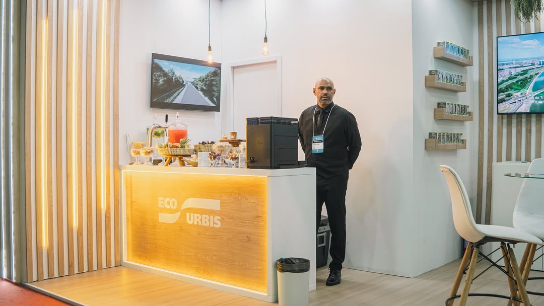 O espaço recebeu convidados para palestras, coquetel de abertura, experiências imersivas e a participação do presidente da Ecourbis na plenária principal, reforçando que design e propósito caminham juntos.